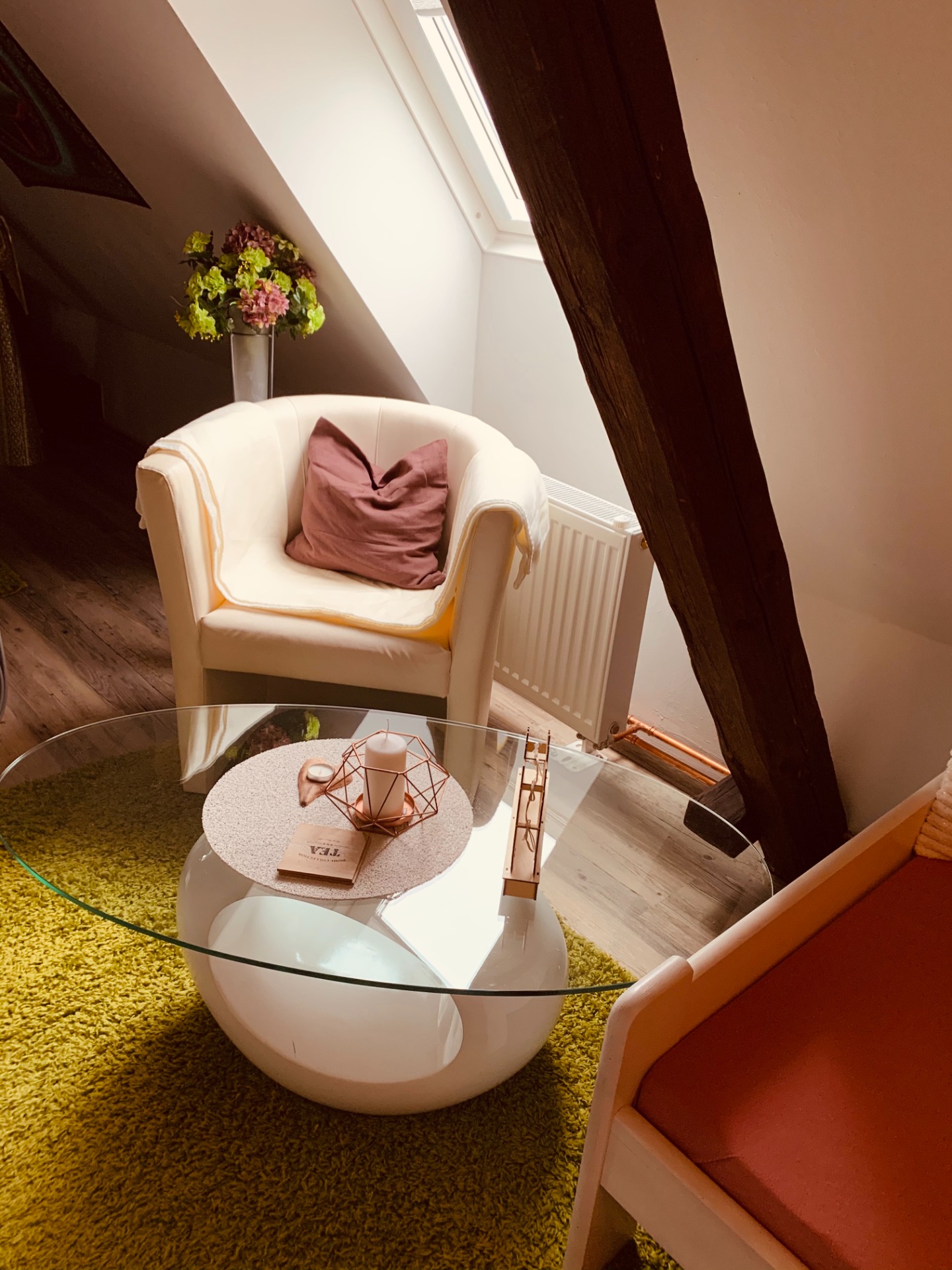 Moje touha věnovat se lymfodrenážím a radiofrekvenci byla natolik silná, že jsem si přizpůsobila prostor v našem domě. Na masáže je vyhrazená 1 místnost se zkosenými stropy v podkroví domu. Jsou zde masážní lehátka, všechny potřebné přístroje a kosmetika, je zde i protor pro posezení a konzultaci před nebo po ošetření. Před touto hlavní masážní místností je vyhrazený čekací prostor se sedačkou a věšákem na kabáty, wc a koupelna.